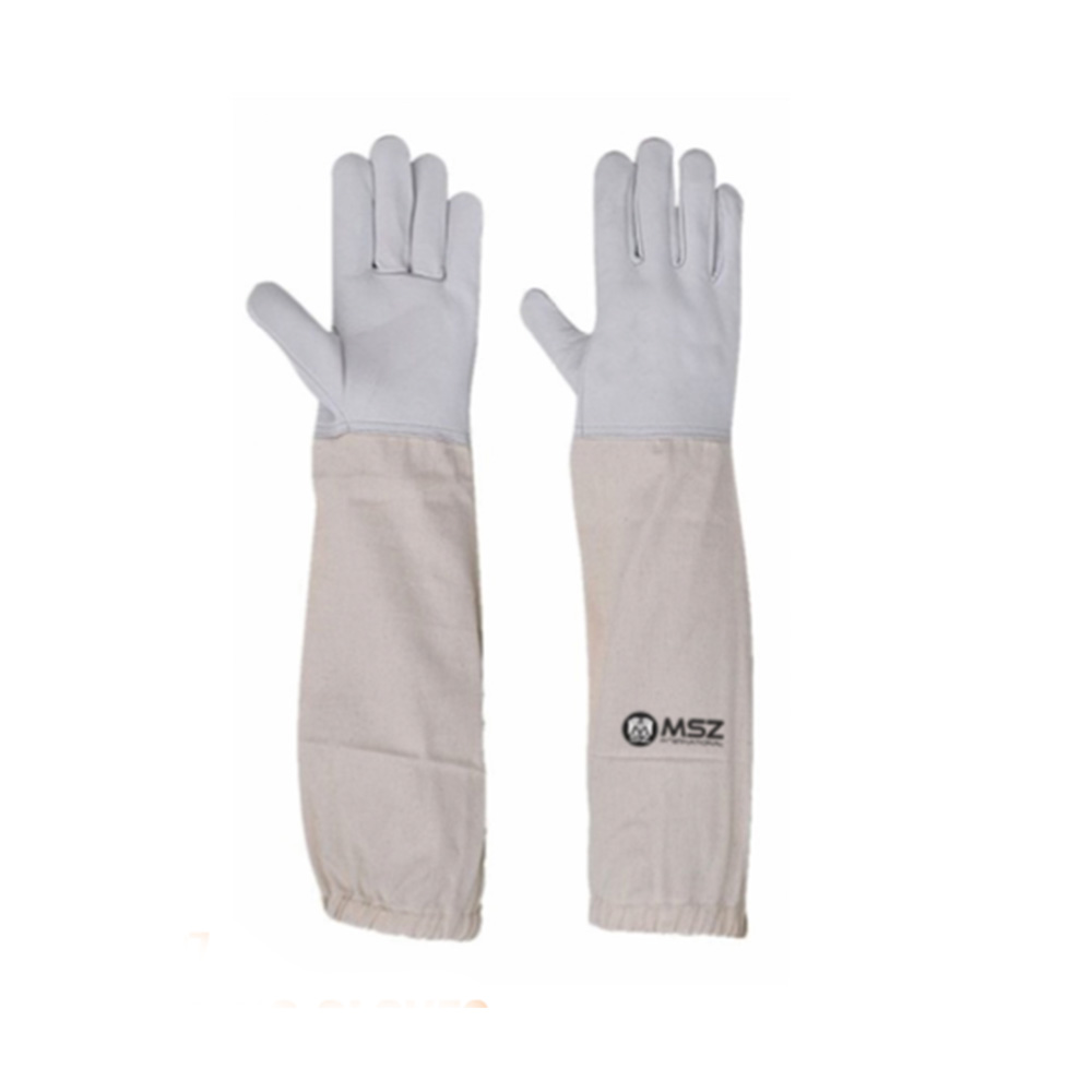 Bee-Keeping Glove made of palm & back cowhide grey leather, cuff made of canvas