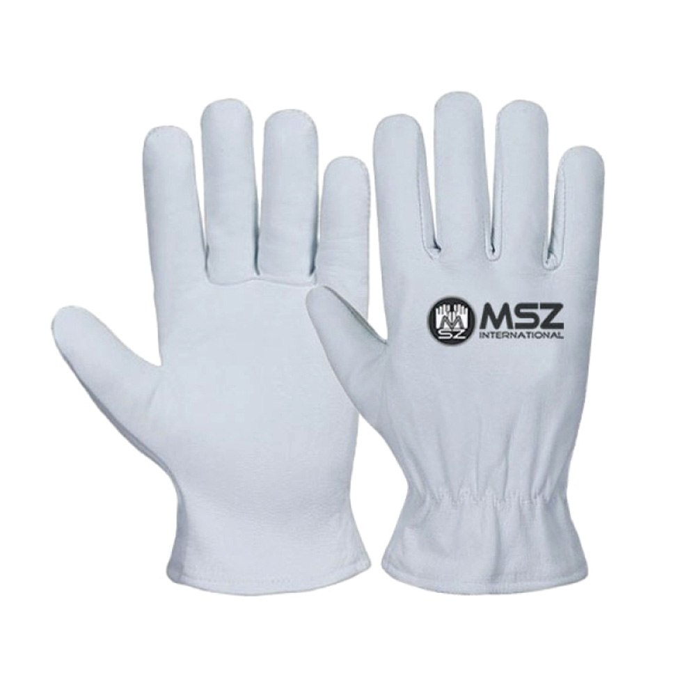 Driver Gloves Palm & Back made of Goatskin Grey color Leather, Wing thumb, Elastic on wrist, binding on edge.