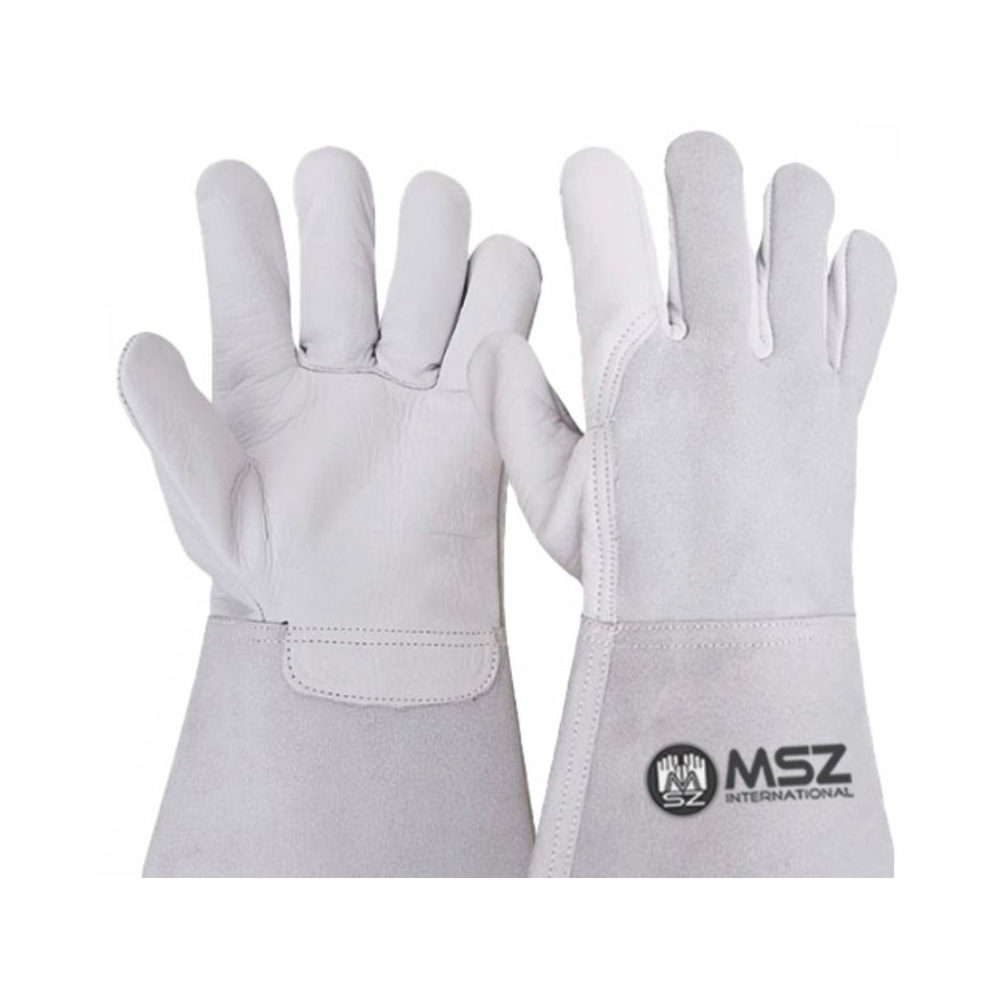 Tig Welding Glove, Palm made of buffalo grey leather back cow split leather, Wing thumb, with cow split leather safety cuff 7cm.